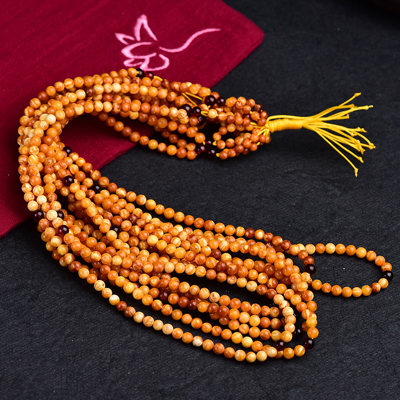 Natural old honey wax ball string bracelet female 108 original chicken yellow pendant singles ring earring