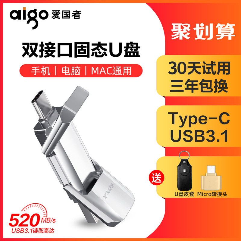 Aigo Patriot solid-state flash drive 1t genuine high-speed USB3 1 Dual-interface Type-C mobile phone flash drive 1t Computer dual-purpose ssd solid-state mobile flash drive Portable USB3 1 dual-interface Type-C mobile phone flash drive
