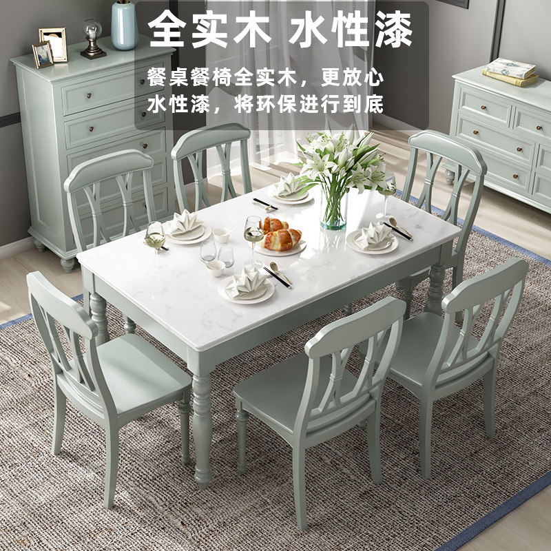 American marble dining table and chair combination all solid wood rectangular modern minimalist light luxury home small apartment dining table