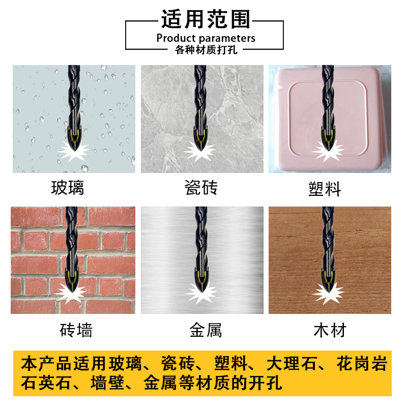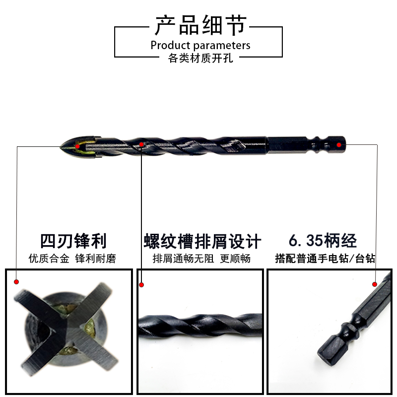 Cross-blade Overlord drill bit universal tile glass metal stone lengthened super hard four-blade alloy multi-function punch