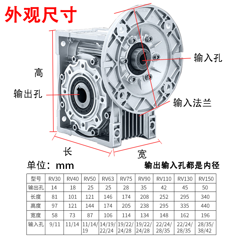 NMRV025 output shaft 11 hole (hollow) NMRV030 output shaft 14 hole (hollow) NMRV040 output shaft 18 hole (hollow) NMRV
