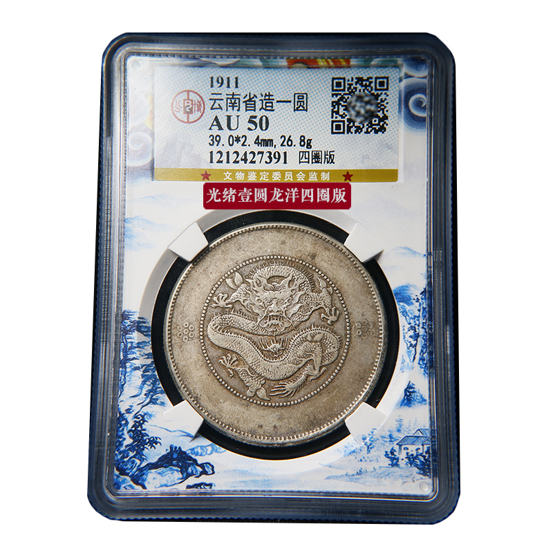 Four-circle version (Beijing Gongbo AU50) 1911 Yunnan Province made a round of Longyang Old Silver coin 1 Q d323 -Taobao