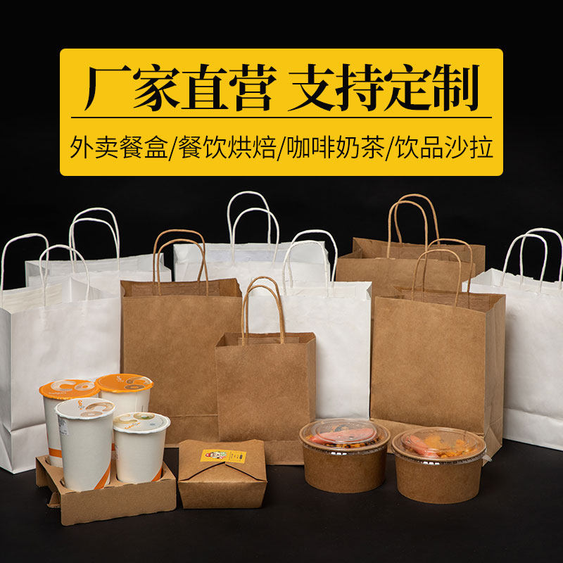 Kraft paper bag tote bag delivery packaging bag barbecue baking milk tea fast food packaging bag can be printed with logo customization