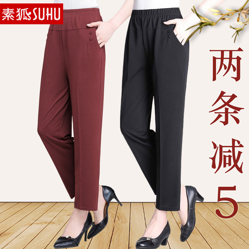 Mom Pants Summer Thin older woman pants loose 90% Pants Ice Silk Grandma Pants Old Lady Straight Cylinder Spring Autumn