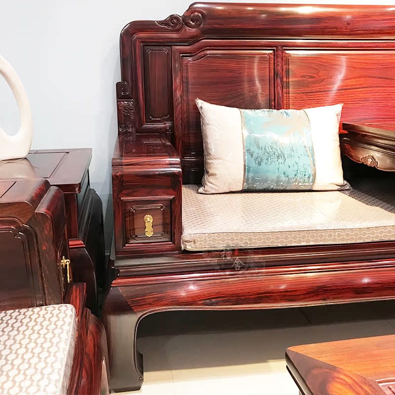 Dongyang national standard Indonesian black acid branch wood Chinese mahogany sofa broad-leaved yellow sandalwood classical solid wood living room combination furniture