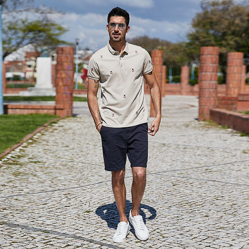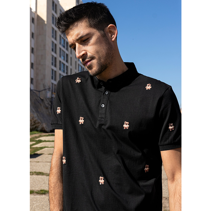 Kuegou men's short sleeve polo shirt men's summer Korean fashion bear embroidery lapel T-shirt tide 7370