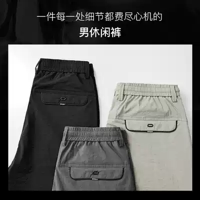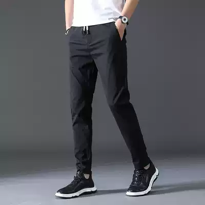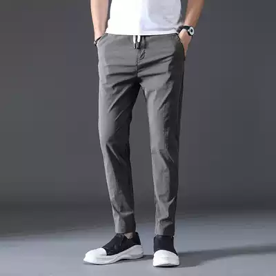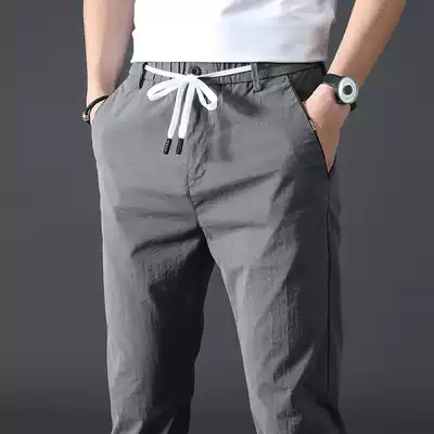 Official website flagship store 2021 ice silk pants men's sports pants elastic breathable small feet men's summer thin Korean style trend