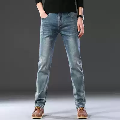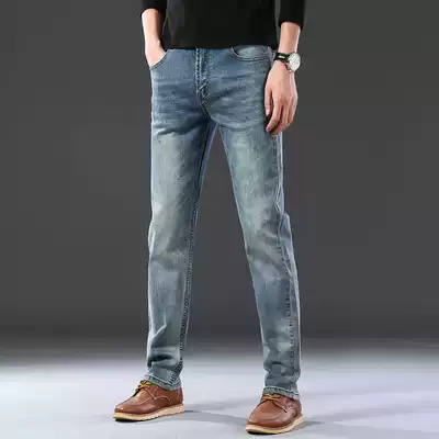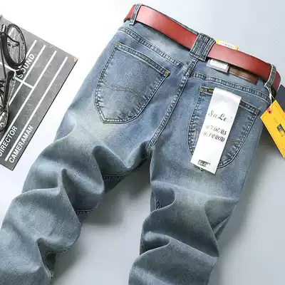 Official website flagship store jeans men's elastic straight slim Korean version of the trend wild retro classic yellow long
