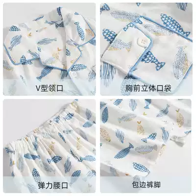 Children's pajamas spring summer short sleeve set thin cotton boy 2021 New loose lapel cute air conditioning suit