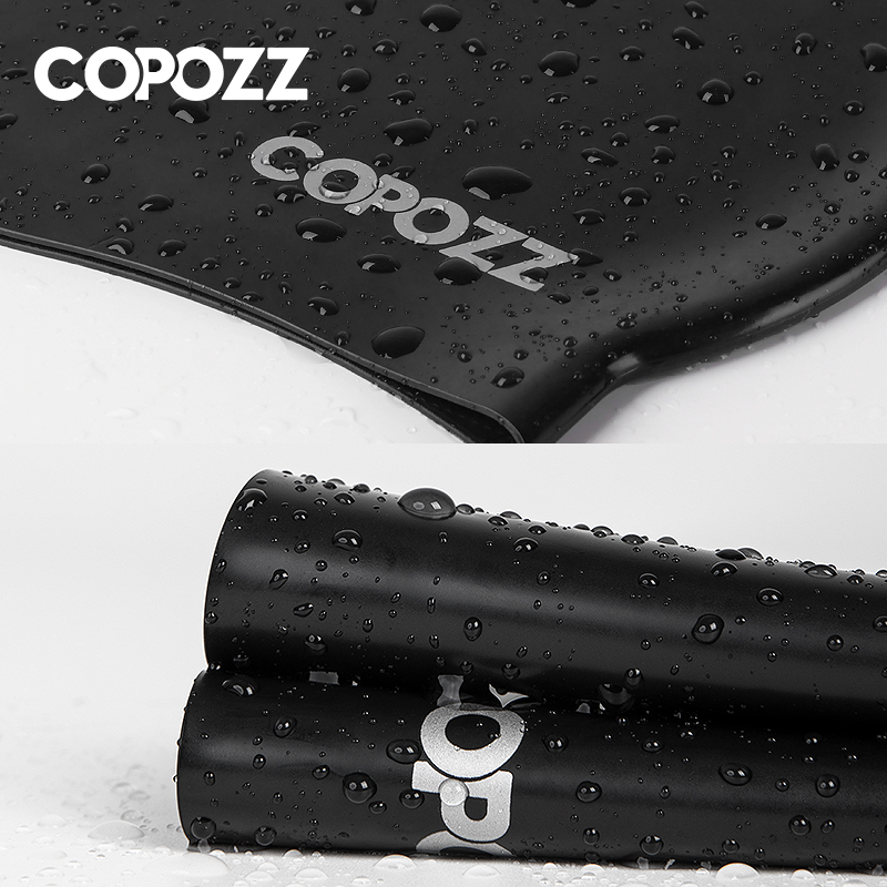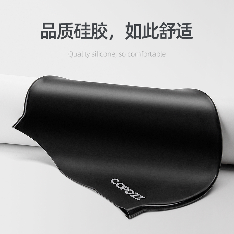 COPOZZ Swimming Cap Men's Large Bule Head Women's Long Hair Earmuffs Adult Waterproof Silicone Swimming Cap Stylish and Cute