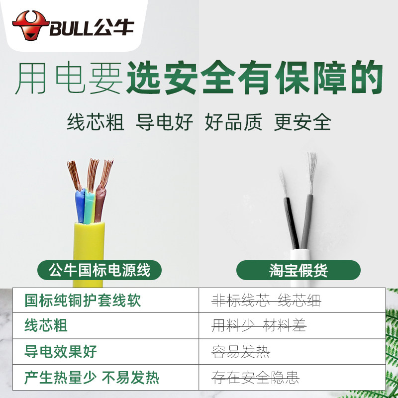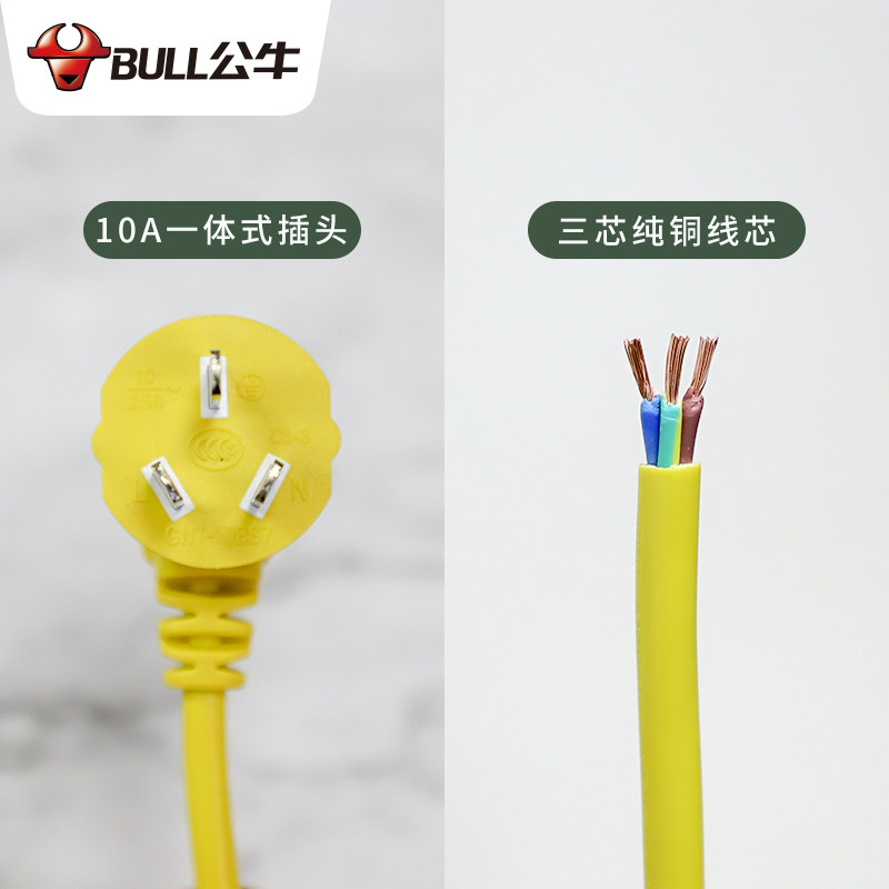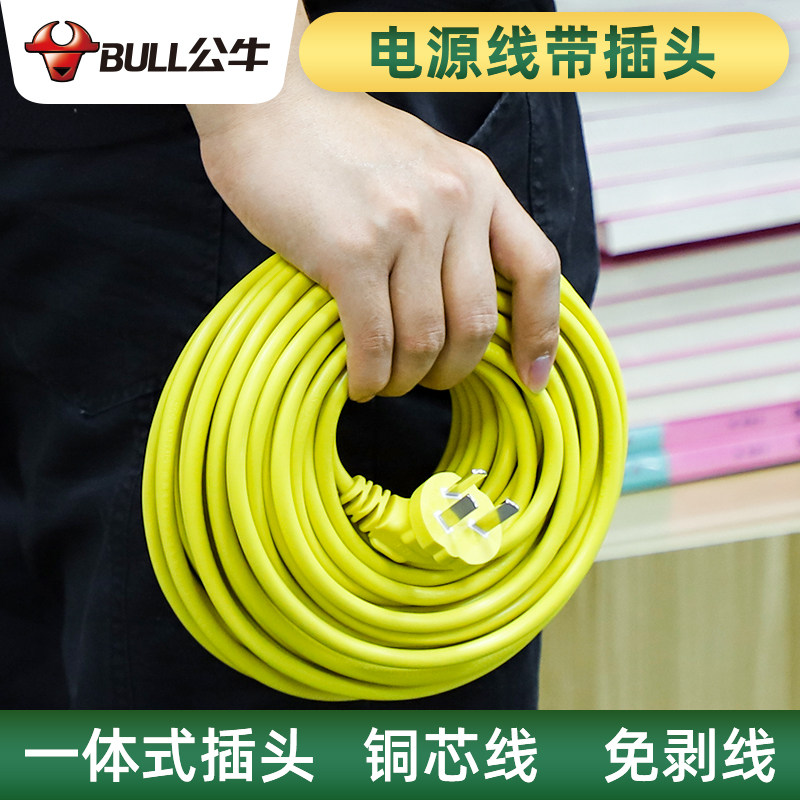 Bull with wire plug three-core power cord 3-core copper core wire Three-wire wire and cable Power extension wire wire
