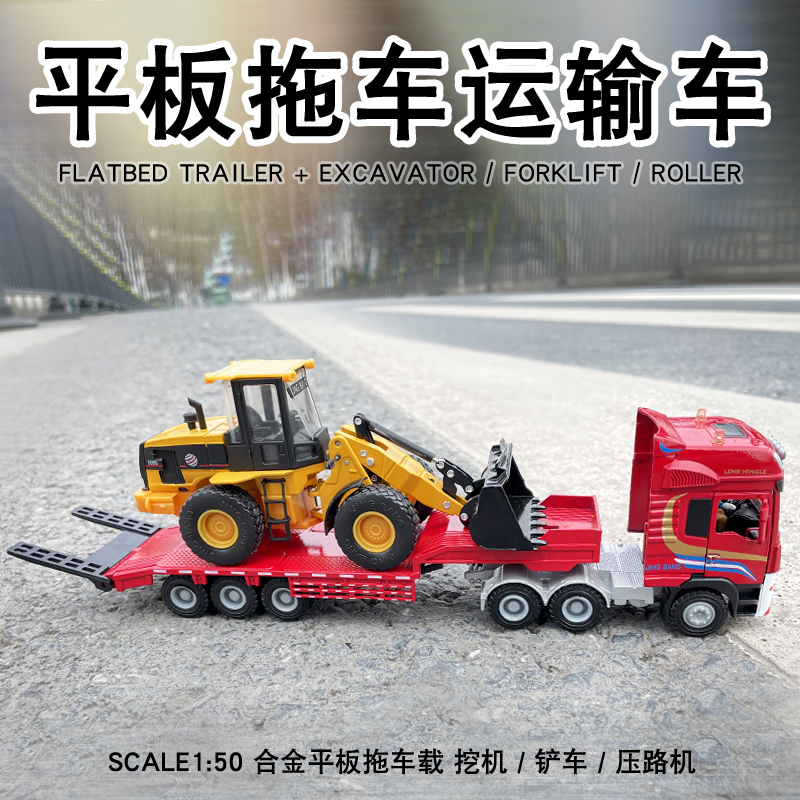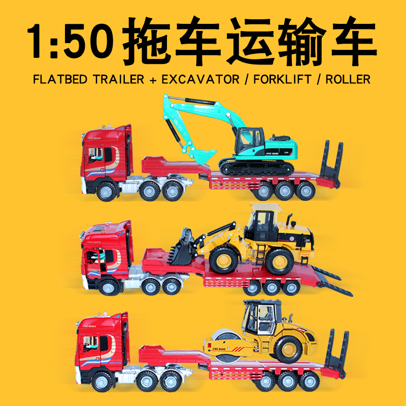 Red flat trailer with yellow roller roller red tablet trailer red tablet trailer red tablet trailer green excavator red tablet trailer with yellow excavator red tablet trailer
