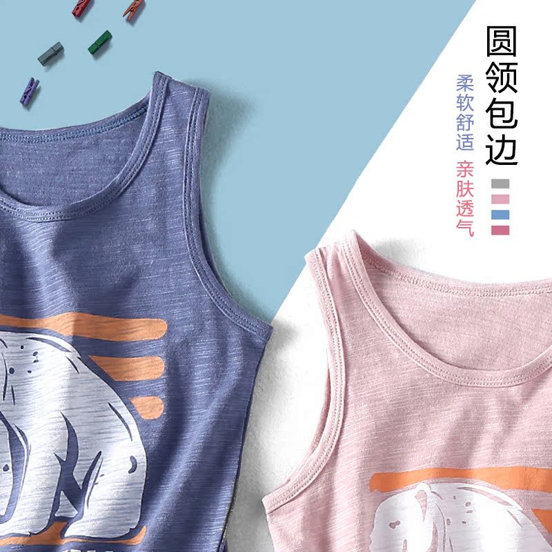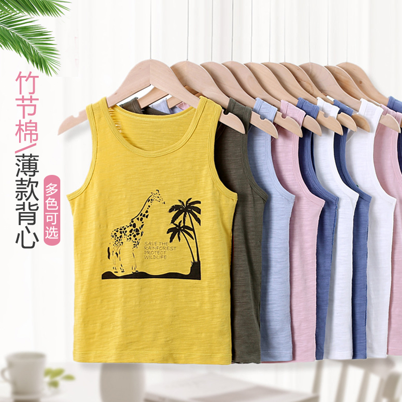 Boys' vest outerwear Children's pure cotton summer thin section baby hurdle bamboo cotton vest middle and small children's T-shirt trendy style