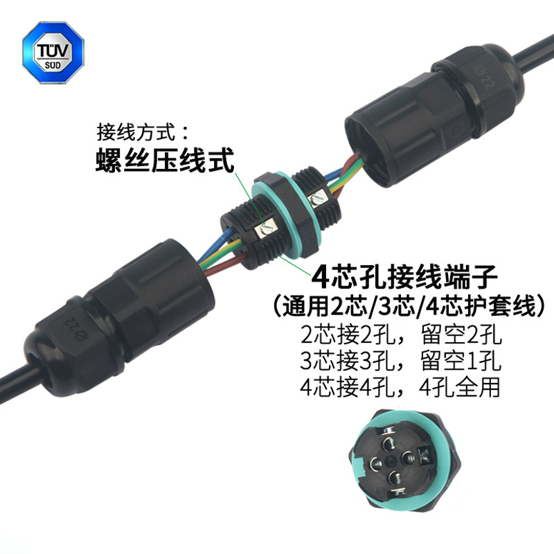 M20S Waterproof Connector 2 3 4 Core Cable Straight Tube Outdoor Lamps Quick Middle Connector Wire Connector Terminals