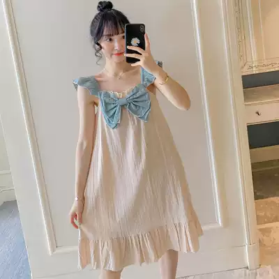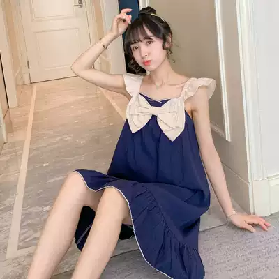 Pajamas women's summer pure cotton student cute suspender night dress summer thin sweet net red burst bow home service