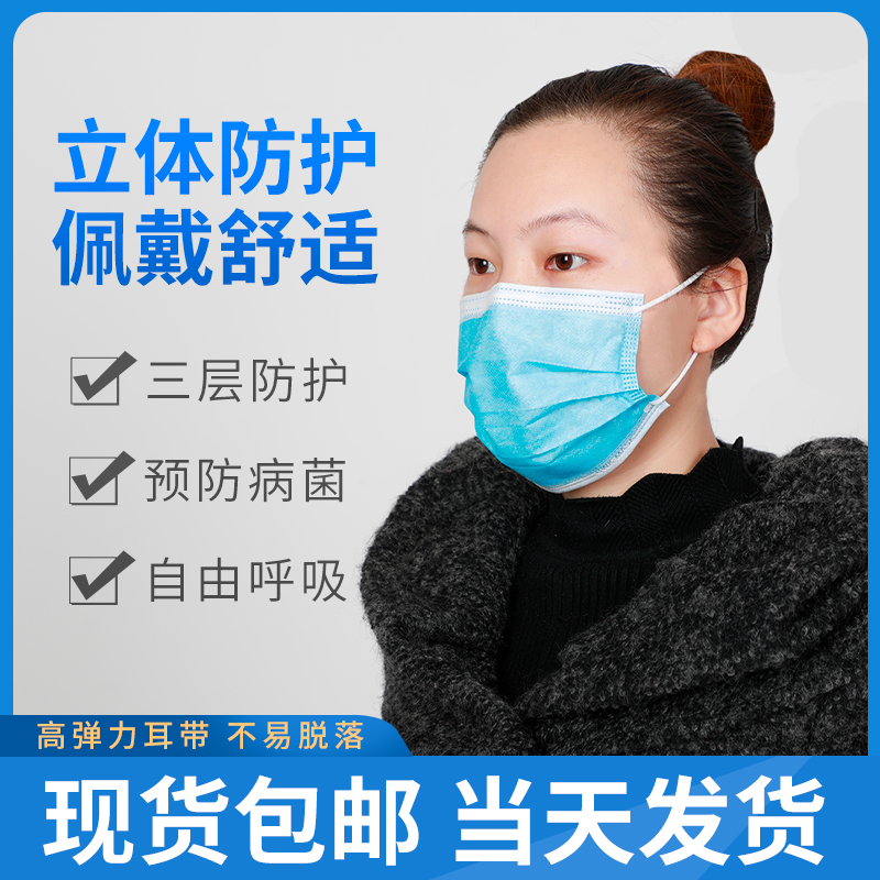 Disposable mask three-layer civil dust-proof non-woven cloth protective anti-fog spot melt-blown cloth adult 50 packs