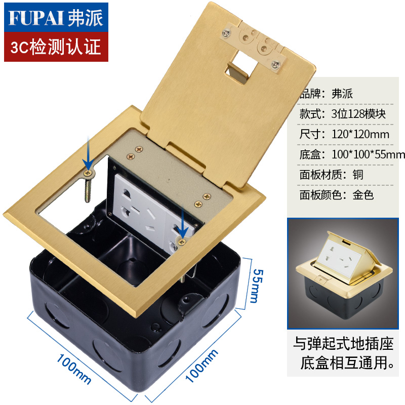Fudi socket hidden type 120 open ground plug full copper waterproof ground socket universal side plug socket