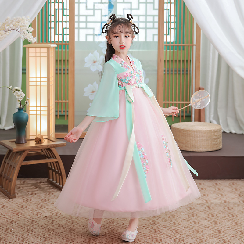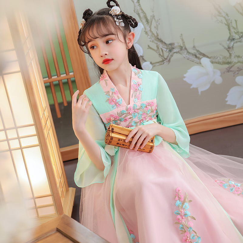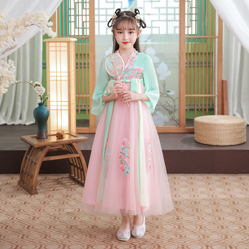 Han - dressed girl in spring and summer 12 - year - old girl in the middle of a big child dress super fairy dress floating sakura blossom in spring and summer