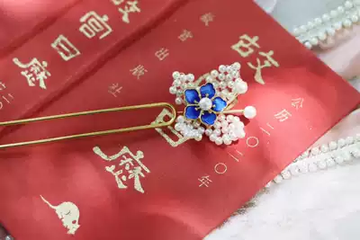 (Xiaofu butterfly)Ancient Hanfu accessories series bead hairpin hairpin burning blue multi-color pearl butterfly sideburns