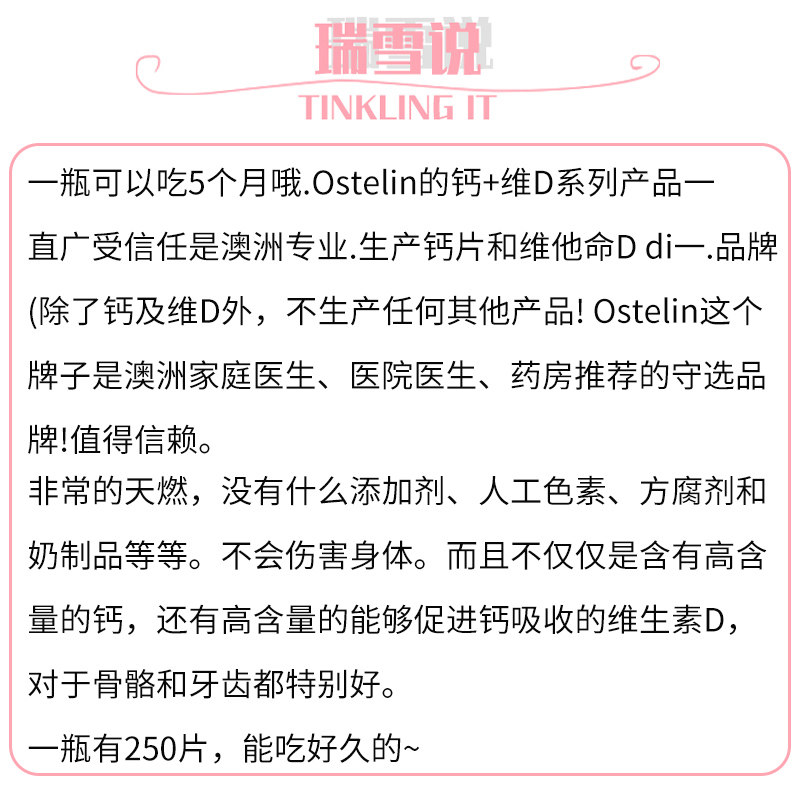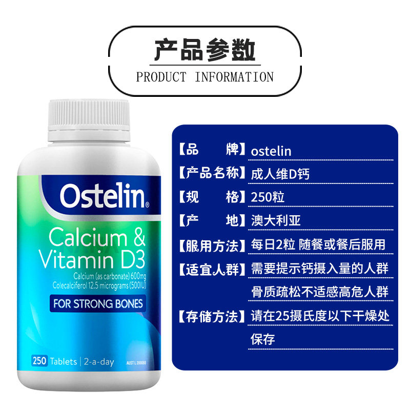 Australian imports Ostelin Adult calcium tablet 250 Vitamin D Dinosaur Calcium Adult Pregnant pregnant with calcium supplements