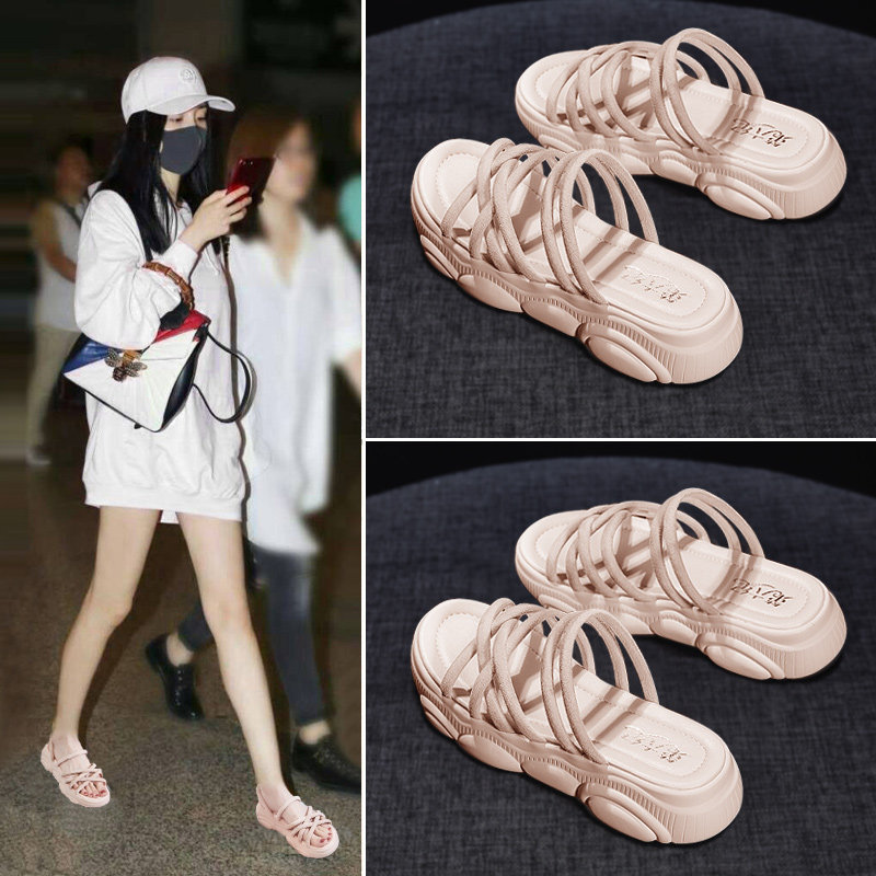 ins super fire sandals and slippers all-match chic tide non-slip soft-soled pregnant women shoes summer all-match thick-soled sandals fairy wind