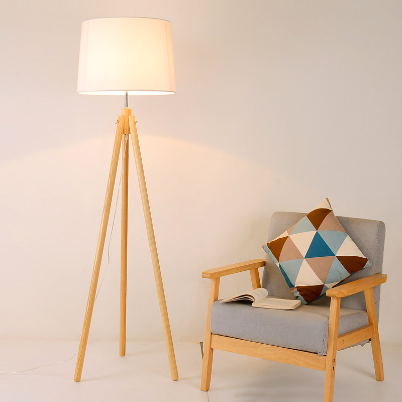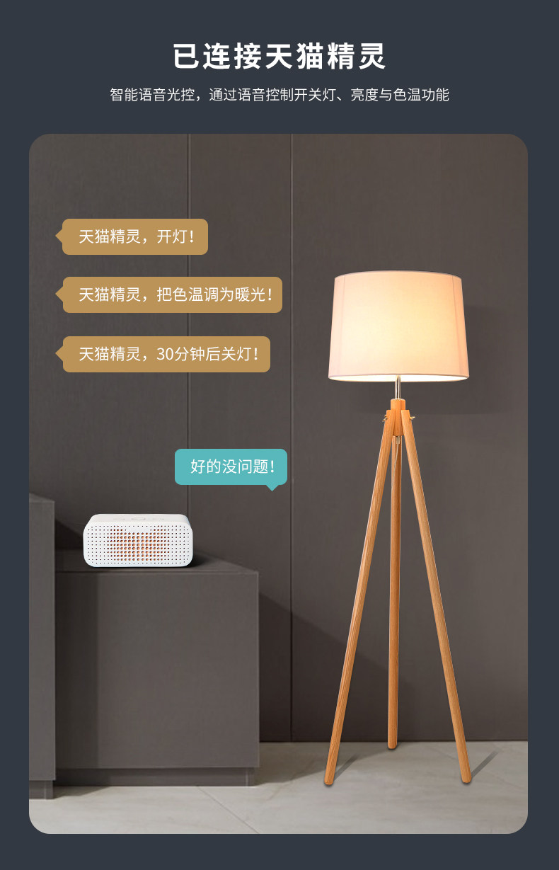 Floor lamp bedroom living room simple modern Tmall Elf remote control Nordic Japanese original solid wood warm vertical table lamp