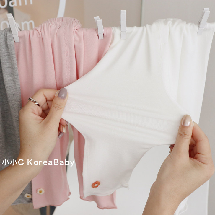 Modal embroidered seven points anti mosquito pants Korean baby 2021 summer New Baby nine points sunscreen pants