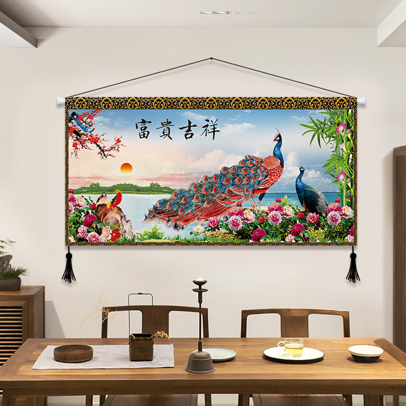 Modern Chinese living room sofa Background wall Decorative Hanging Painting Middle headboard background wall hanging blanket in place of cross stitch