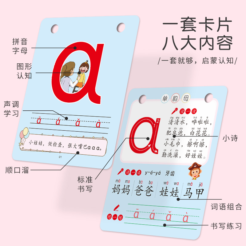 There are Tupinyin card-large number teacher version (67 sheets) (with picture no-picture) pinyin card full set of complete pinyin parquet read training manual with picture pinyin card-middle number student version (67 sheets) with