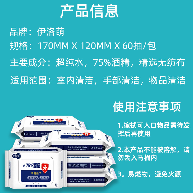 Ilo Meng 75% Alcohol Disinfection Wet Towel Disposable Wipe Hands Sterilization Wet Towel Kill and Bacteriostatic Portable 60 tablets
