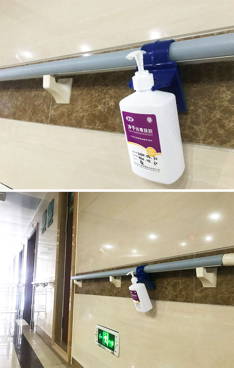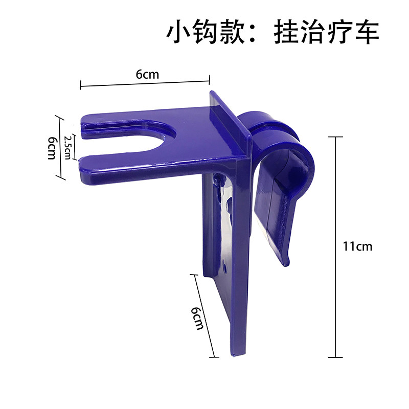 The large hook can be hung on the corridor handrail or the end of the bed. The small hook can be hung on the cart. The no hook can be hung on the wall or elevator.