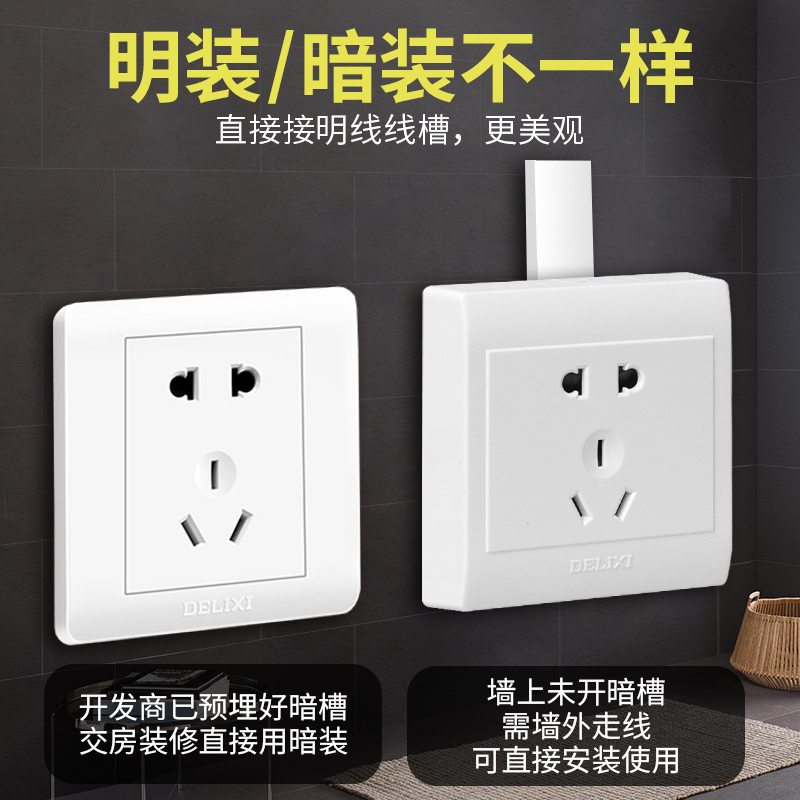 DeLixi 86 Type Ultra Slim Fit Switch Socket Wall Switch Panel 23 Inserts Home Five Holes Power Socket