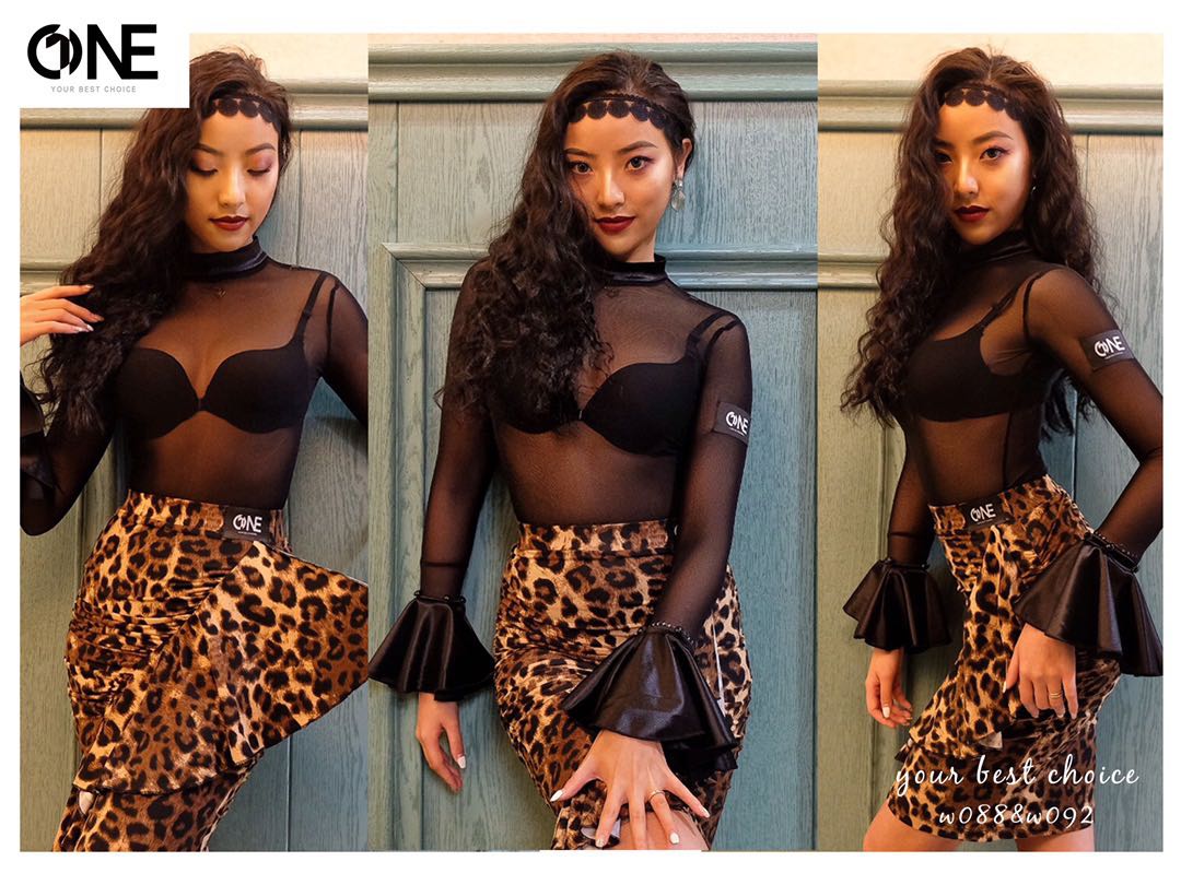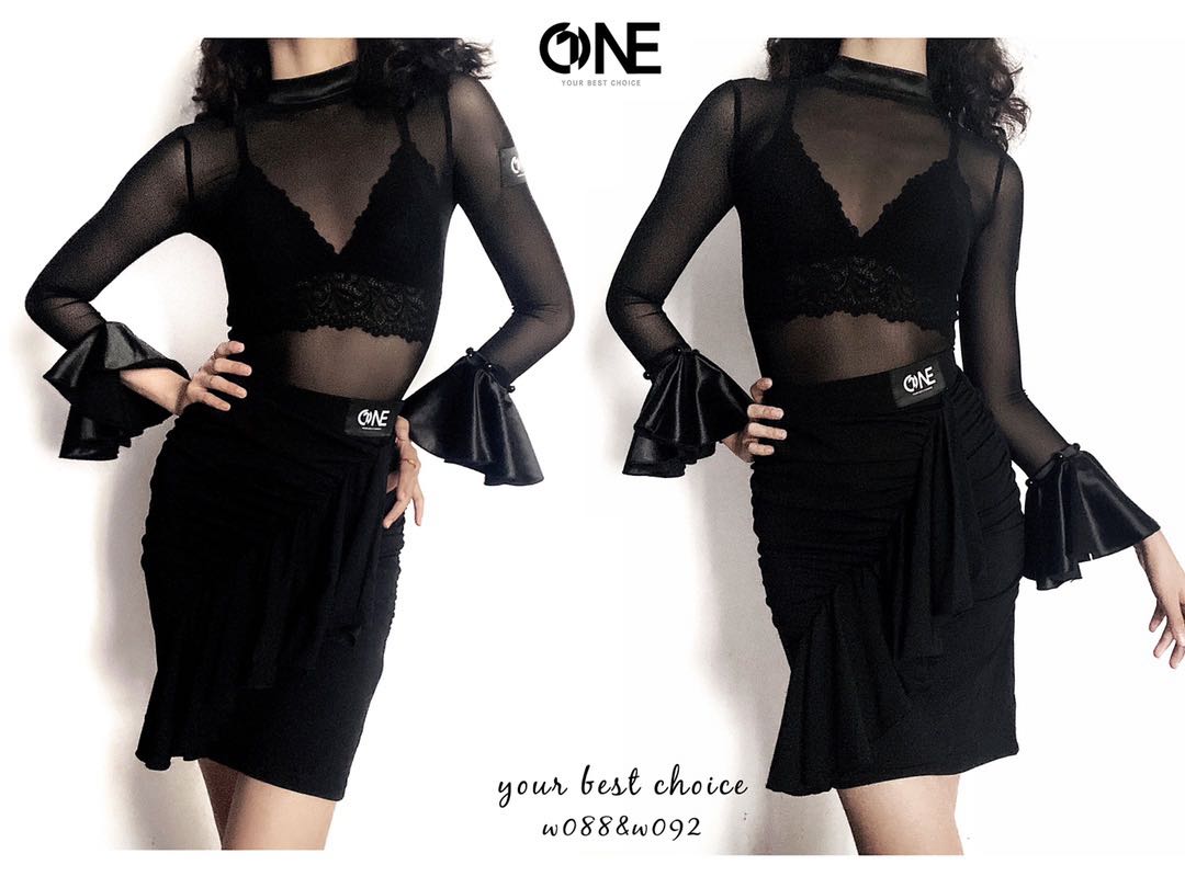 ONE 088 Sexy web yarn blouse Latin Morden dance suit sleeves can be torn apart two wearing specialties slim without underwear