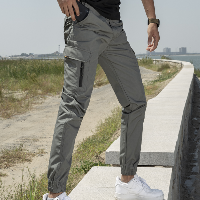 Spring and autumn tactical pants men's self-cultivation black military fans training pants sports outdoor overalls pants bunched feet dark night color pants