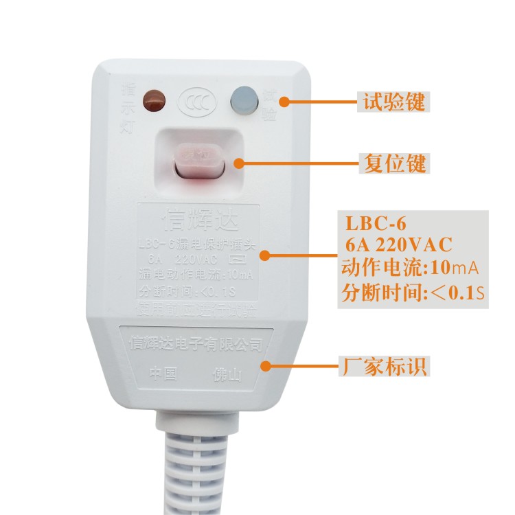 Gas water heater leakage protection plug power cord Xinhuida LBC-6a universal accessories white factory direct supply