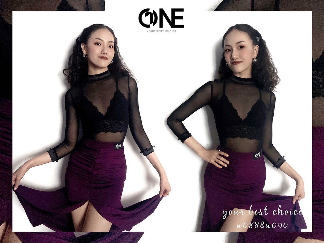 (ONE) W090 Latin dance suit 100 hitch half body dress length dress hip ultra highlights slim fit with a long professional