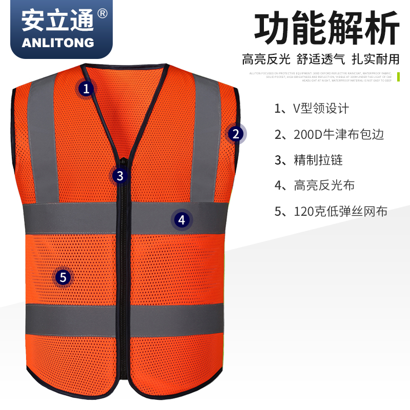 Anlitong reflective vest construction sanitation workers safety clothes garment road traffic reflective safety clothing can be printed