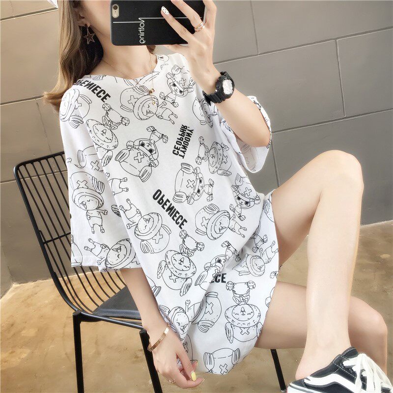 Tide card 2022 Summer new white medium Long version T-shirt Female short sleeve Korean version printed loose Thin Fashion Half Sleeve