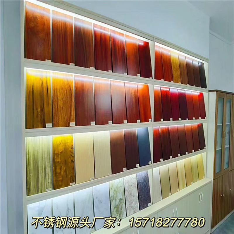 Spot stainless steel thermal transfer imitation wood grain plate color gold silk nan oak red wood board and other decorative custom processing