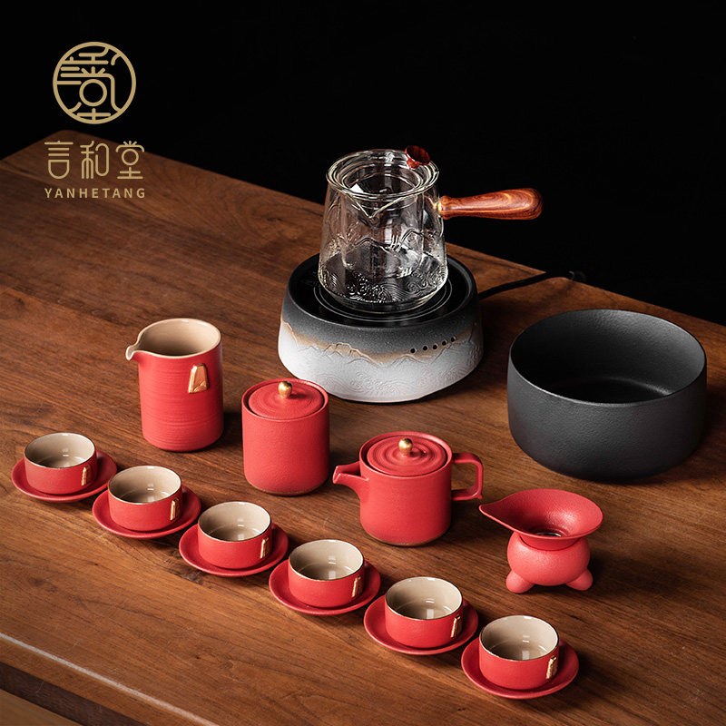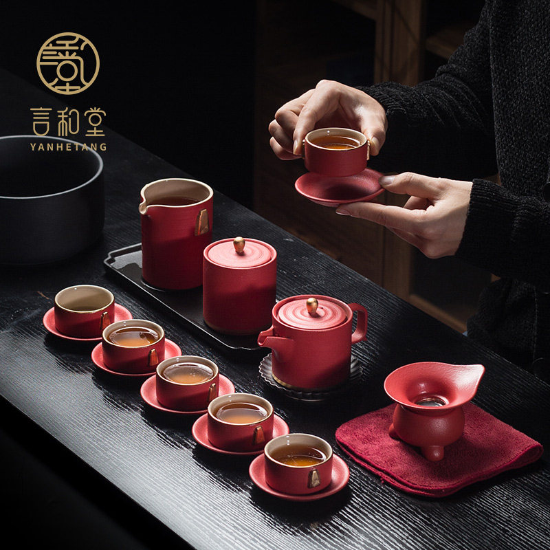 (Advanced gift box)Jinbrook Mountain River-Tea pot 18 pieces (Golden Red) (Advanced Gift Box)Jinhong Mountain River-18 pieces of teapot-18 pieces (Black Sand) (Advanced Gift Box)