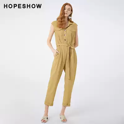 Red sleeve hopeshow slacks summer new women's lace-up lapel irregularly sleeveless tapered jumpsuit