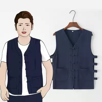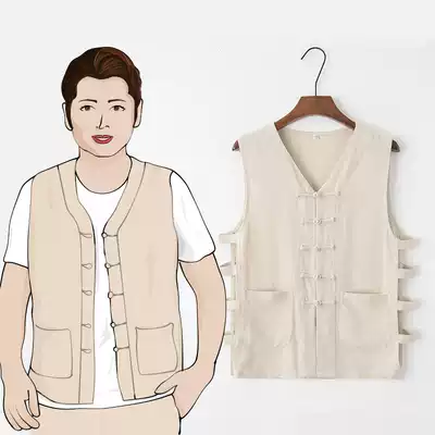 Summer Old Man shirt thin cotton linen disc buckle vest Tang suit male middle-aged grandfather sweatshirt vest Chinese style