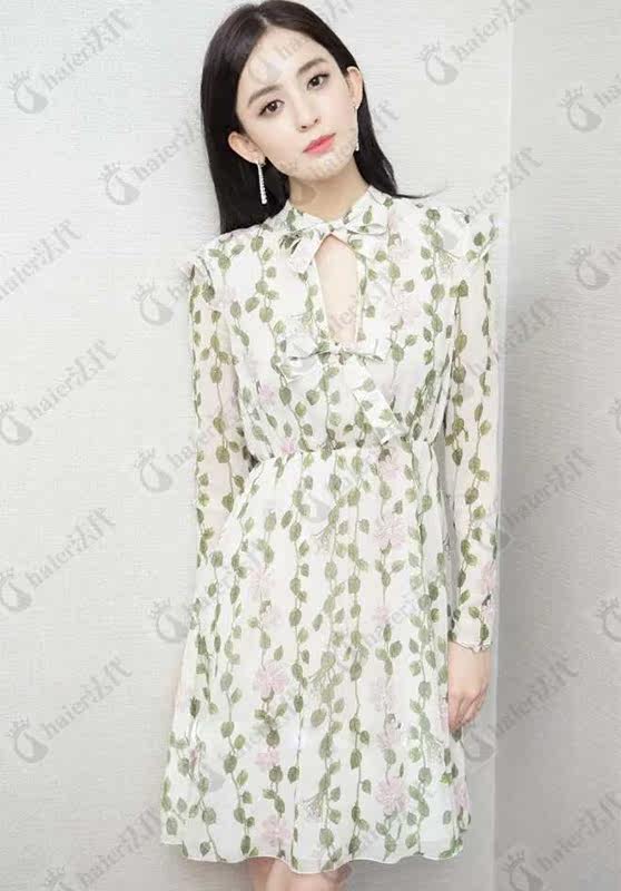 haier French Self-Portrait 2020 spring Coulee Naza star with the same print chiffon dress