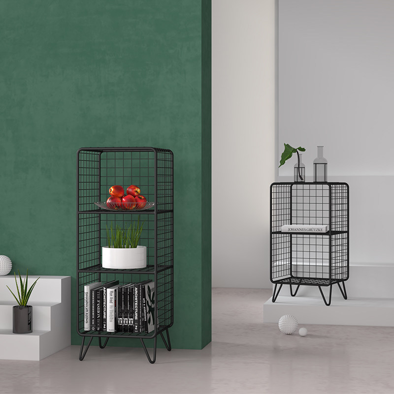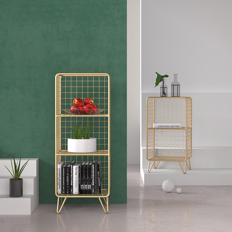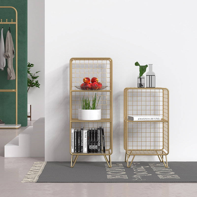 Nordic living room bedroom shelf corner bookshelf wrought iron multi-layer storage rack decorative display rack bedside table