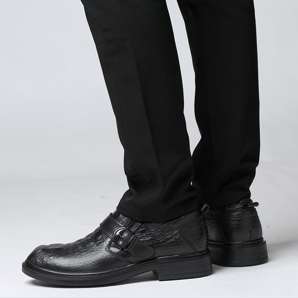 Business Positive Dress Leather Shoes Men 2022 Trends Casual 100 Hitch Black Genuine Leather Crocodile Print Large Size Higher Derby Shoes