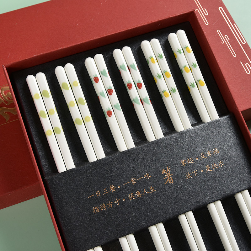 6 Double Strawberry Chopsticks (without gift box) 6 Double pineapple chopsticks (without gift box) 6 Double green lemon chopsticks (without gift box) 6 Double sun chopsticks (without gift box) 6 Double blue peach heart chopsticks (without a gift box)
