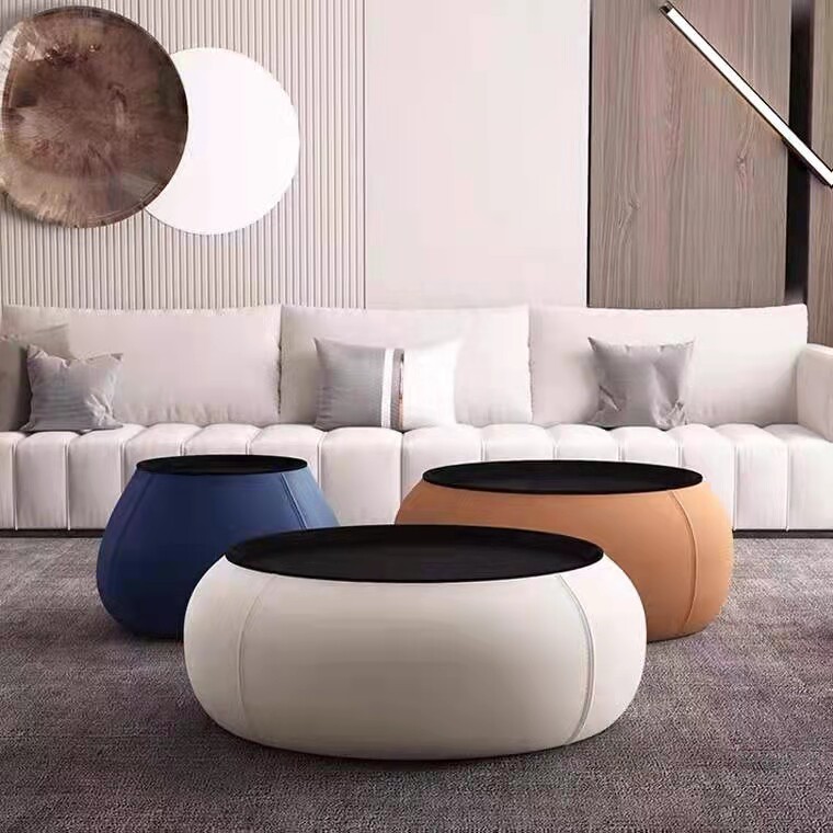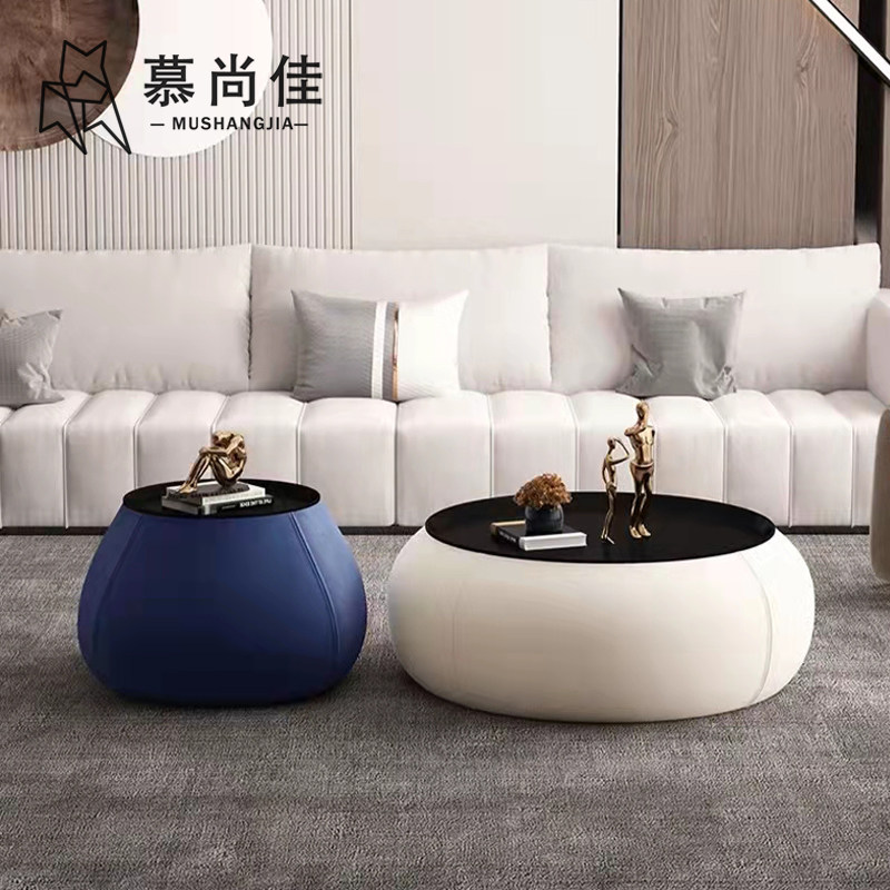 Nordic light luxury round coffee table combination storage modern minimalist designer small apartment living room solid wood personality side table