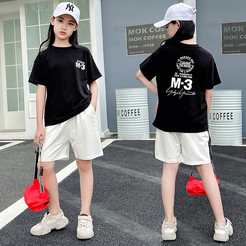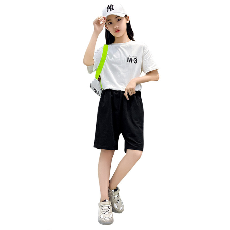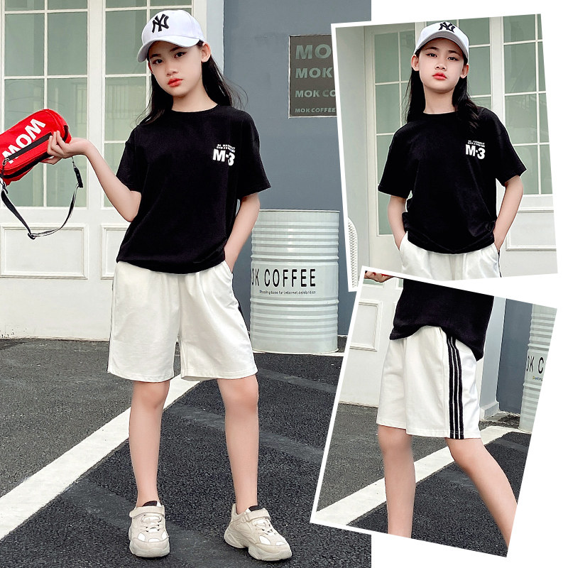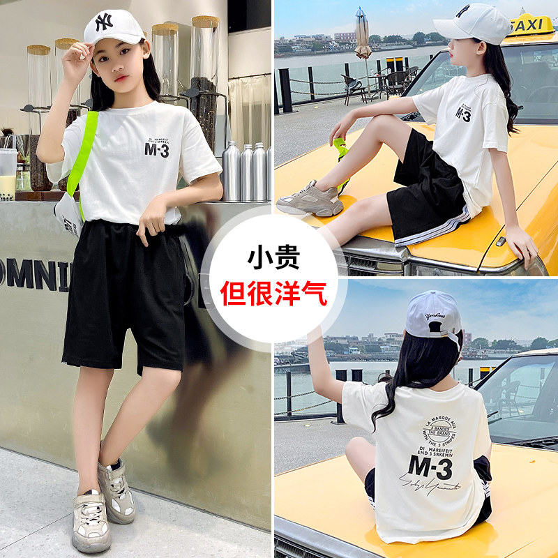 Girl's Summer Suit 2022 Tide Girl Child Foreign Pie Short Sleeve Sports Summer Dress CUHK Child Casual Shorts Children