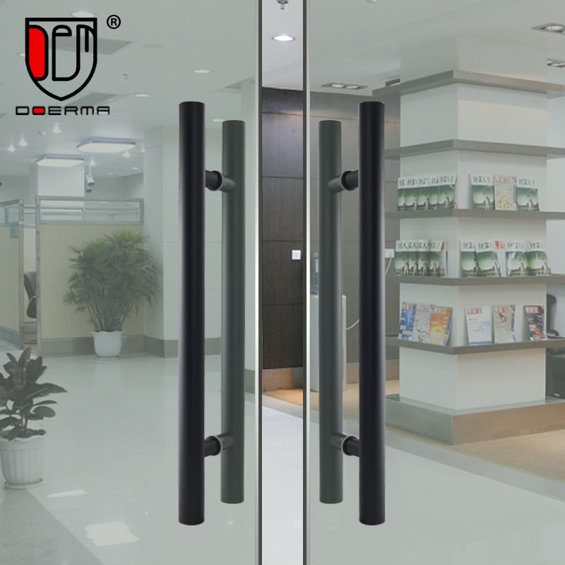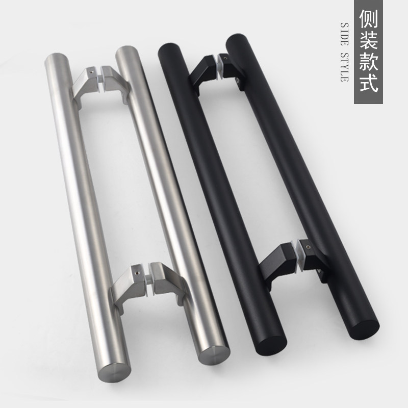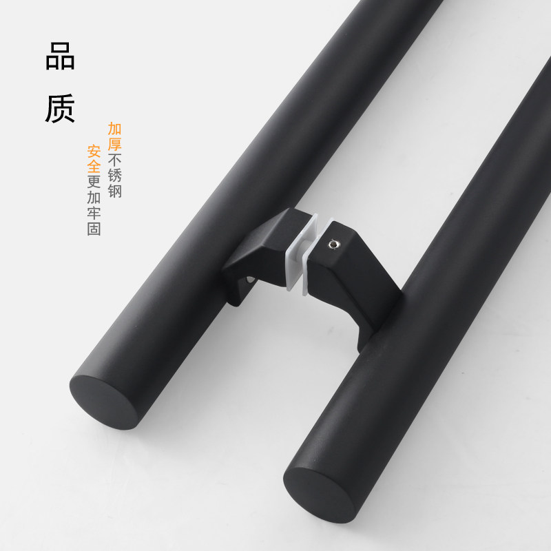 Extremely simple stainless steel square handle black glass door handle Ramen with frame door hotel office large door handle