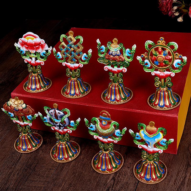 Tibetan Buddhist Buddhist Wares Wares Bronze Color Drawing Auspicious Eight Treasures Eight Auspicious Decorative Swing Accessories High 12cm